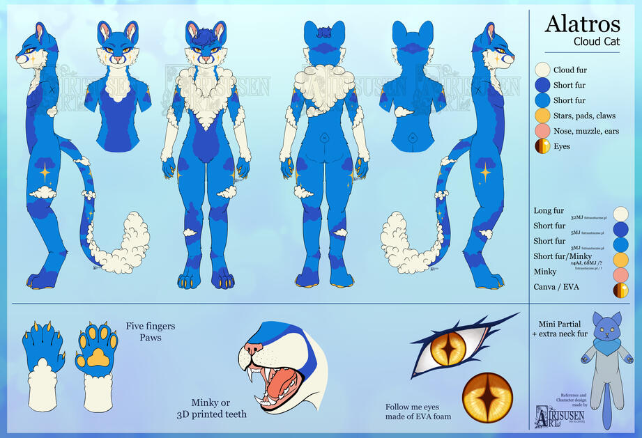 3. Complex designs and/or the use of more than 3 fur colors increase the price of the fursuit.